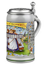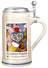 Offizieller OktoberfestkrugDie neuen WiesnkrügeDie "offiziellen Jahreskrüge der Stadt München" sind jedes Jahr mit dem aktuellen Oktoberfest-Plakat dekoriert. Die Klassiker sind die Steinkrüge. Diese Wiesnkrüge gibt es auch heuer in verschiedenen Ausführungen (mit oder ohne Zinndeckel) sowie in verschiedenen Grössen. Vom klassischen Masskrug mit 1,0 Liter Inhalt bis zum Schnaps-Krügerl mit 4cl Inhalt ist hier wieder alles mit dabei. Übersicht der Krüge...